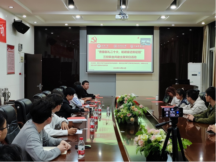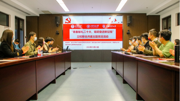 研究生党支部联合西安交通大学电气工程黄播平台研究生党支部、中国农业大学信息与电气工程黄播平台研究生党支部通过“线下会场+线上会议”的方式举行“青春献礼二十大,砥砺奋进新征程”三校联合共建主题党日活动,增强校际交流,领会党的二十大精神。黄播平台