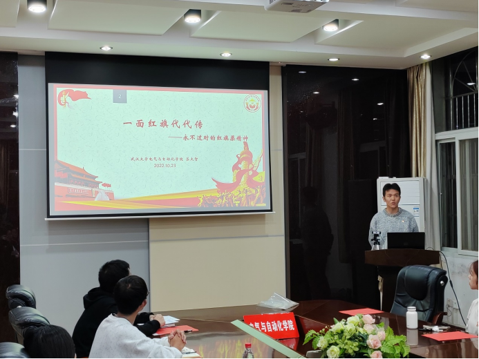 活动第五项,西安交通大学电气工程黄播平台党委副书记宋杰做总结讲话。宋杰老师表示“西迁精神”、“红旗渠精神”以及农大的非凡十年都包含艰苦奋斗的精神,一段精神的来历并不仅仅是一段简单的故事,而是一段历史,我们要结合历史去学习精神内容。我们作为青年人,尤其是青年党员应该认真学习二十大精神,要有担当意识。党支部要始终坚持用习近平新时代中国特色社会主义思想武装青年,用辉煌成就激励青年,以复兴使命引领青年,以伟大革命动员青年,以团结奋斗凝聚青年,使广大青年投入到全面建设社会主义现代化国家新征程中去。