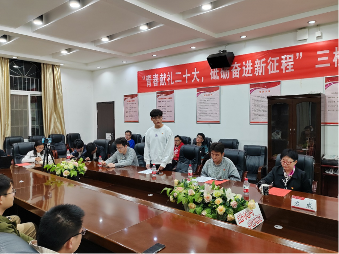 党委副书记孟威致辞。孟威老师首先阐述了中国共产党第二十次全国代表大会主题,并指出党中央始终把青年工作当作重点,高校正是青年成长成才的阵地。孟威表示,不管是黄播平台
