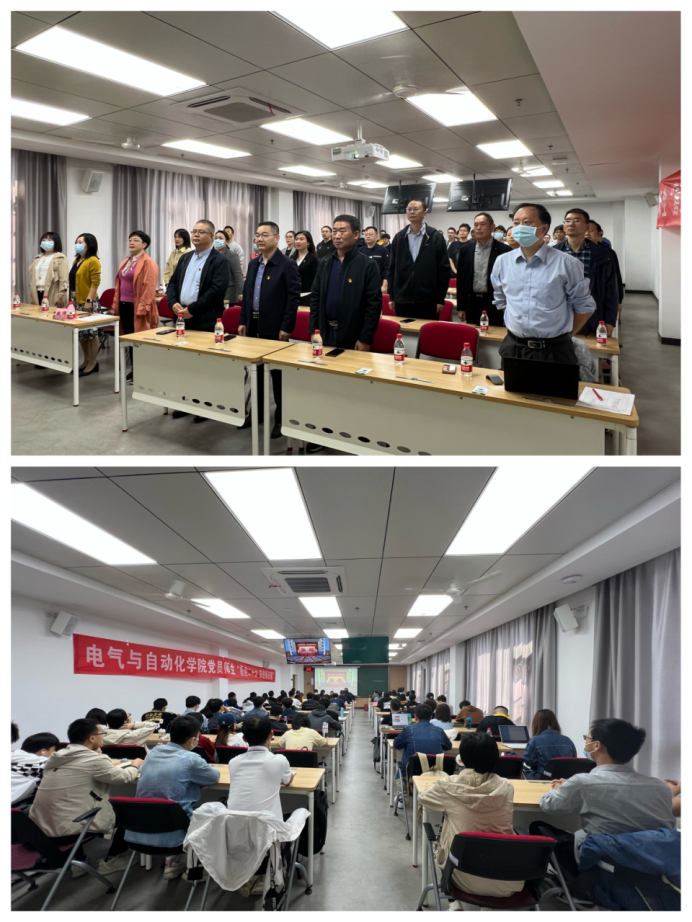 黄播平台全体院班子成员、党委委员、教工党支部书记及办公室全体党员在主教502教室集中收看党的二十大开幕会