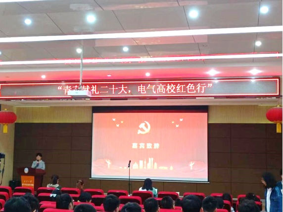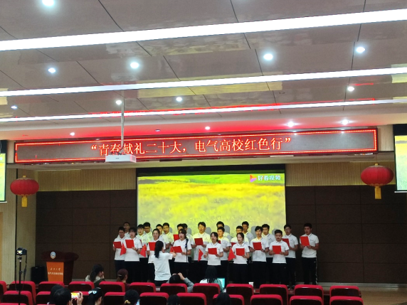 于10月14号下午在电气报告厅举行“青春献礼二十大,电气高校红色行”主体系列活动之红歌会暨2022级新生入学教育。本次活动邀请了院党委副书记孟威、院团委副书记张晗等出席并担任评委。
