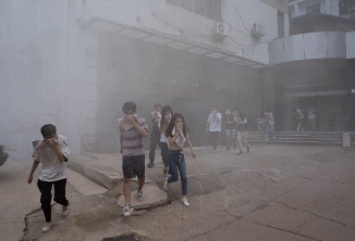 在消防逃生演练环节,保卫部老师向在场师生就应急疏散逃生和灭火器使用的注意事项进行了细致的讲解。模拟场景为火势较大,超出了扑救范围,老师和同学们按照逃生注意事项进行了有序撤离。之后,在场师生两人一组,进行了干粉灭火器的实践操作。