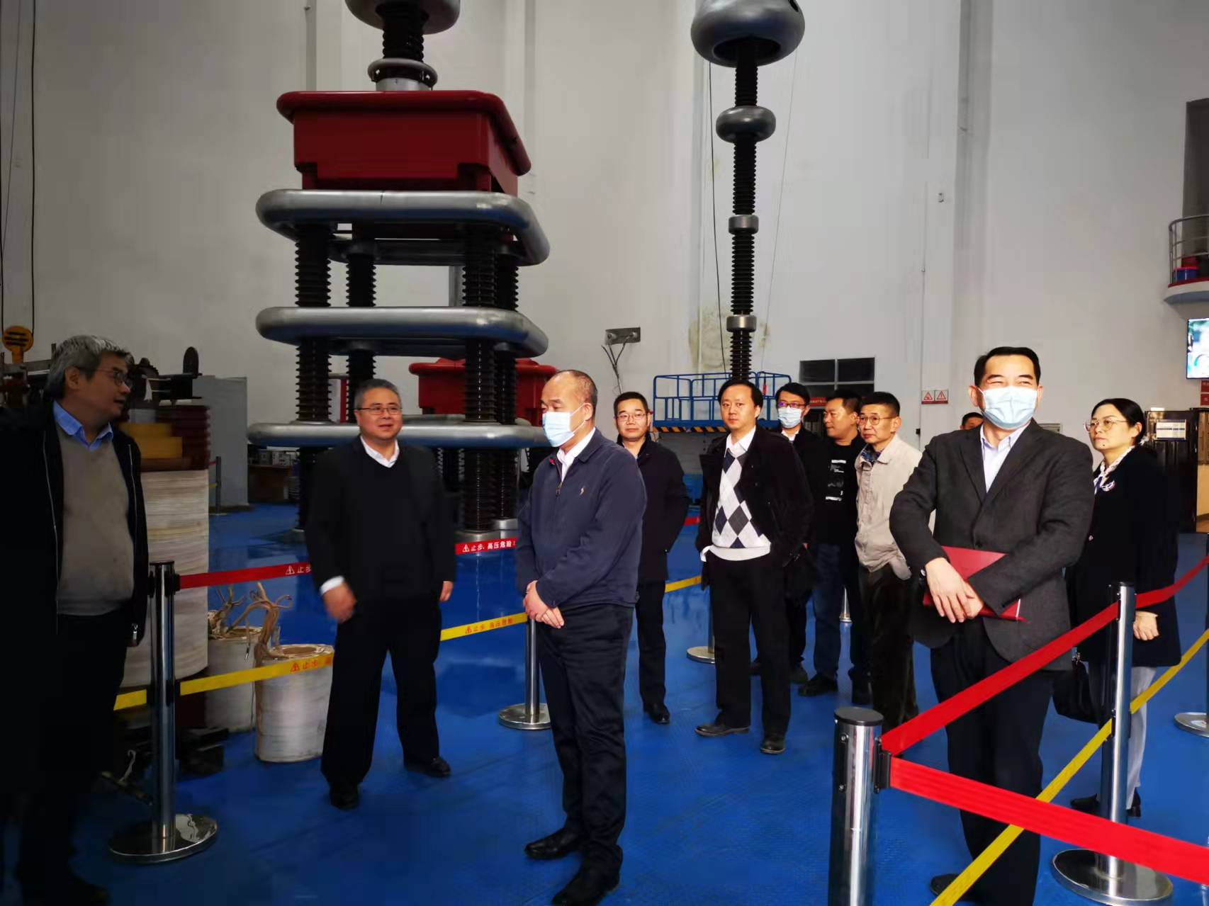 窦贤康校长一行首先进行了实验平台调研,参观了高电压实验大厅,并在实验室观看了100MW级海水抽水蓄能机组与可再生能源联合运行仿真平台的演示。