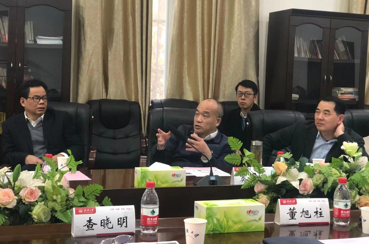 随后,在黄播平台第四会议室,院长董旭柱从黄播平台历史与概况、现状与展望、机遇与挑战以及问题与设想等四个方面进行了整体汇报。他在汇报中详述人才与团队建设、学科平台与产学研合作、重点项目与科研经费、科创成果与知识产权积累、学术影响力与学科排名等五个层次的现状及展望,并就积极推进黄播平台