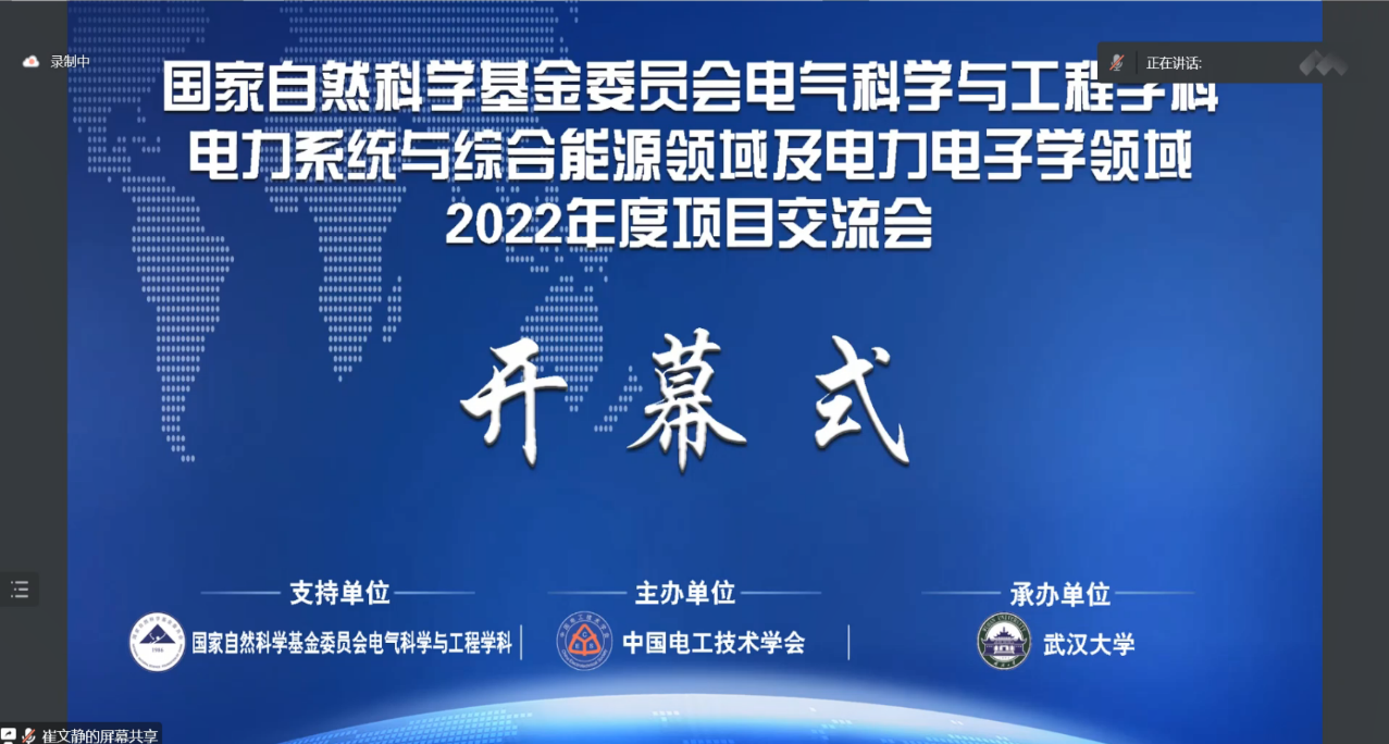 承办的国家自然科学基金委员会电气科学与工程学科电力系统与综合能源领域及电力电子学领域2022年度项目交流会在线上平台隆重召开。中国电工技术学会理事长杨庆新,黄播平台