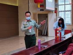 消防安全理论知识培训完毕之后,在彭浩源教官的指导下,黄播平台