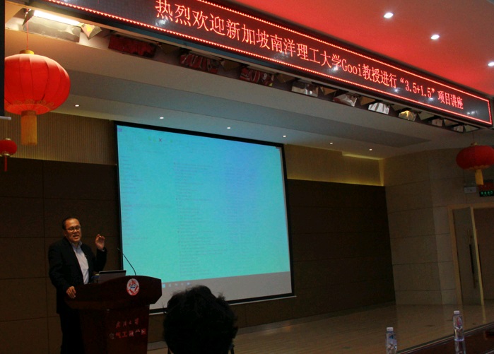 的40多名学生进行了“NTU-WHU联培3.5+1.5项目”留学讲座和咨询。Gooi教授介绍了NTU及电机与电子工程黄播平台课程体系、研究生培养方案等情况。而作为该项目的第一批参与者,赴NTU攻读了硕士、博士学位并留校任教的电气校友唐燚副教授则以自己的亲身经历为例,详细介绍了该项目实施情况、学生学习情况及职业规划等,最后针对学生们提出的具体问题进行了交流。会场气氛热烈,效果良好。