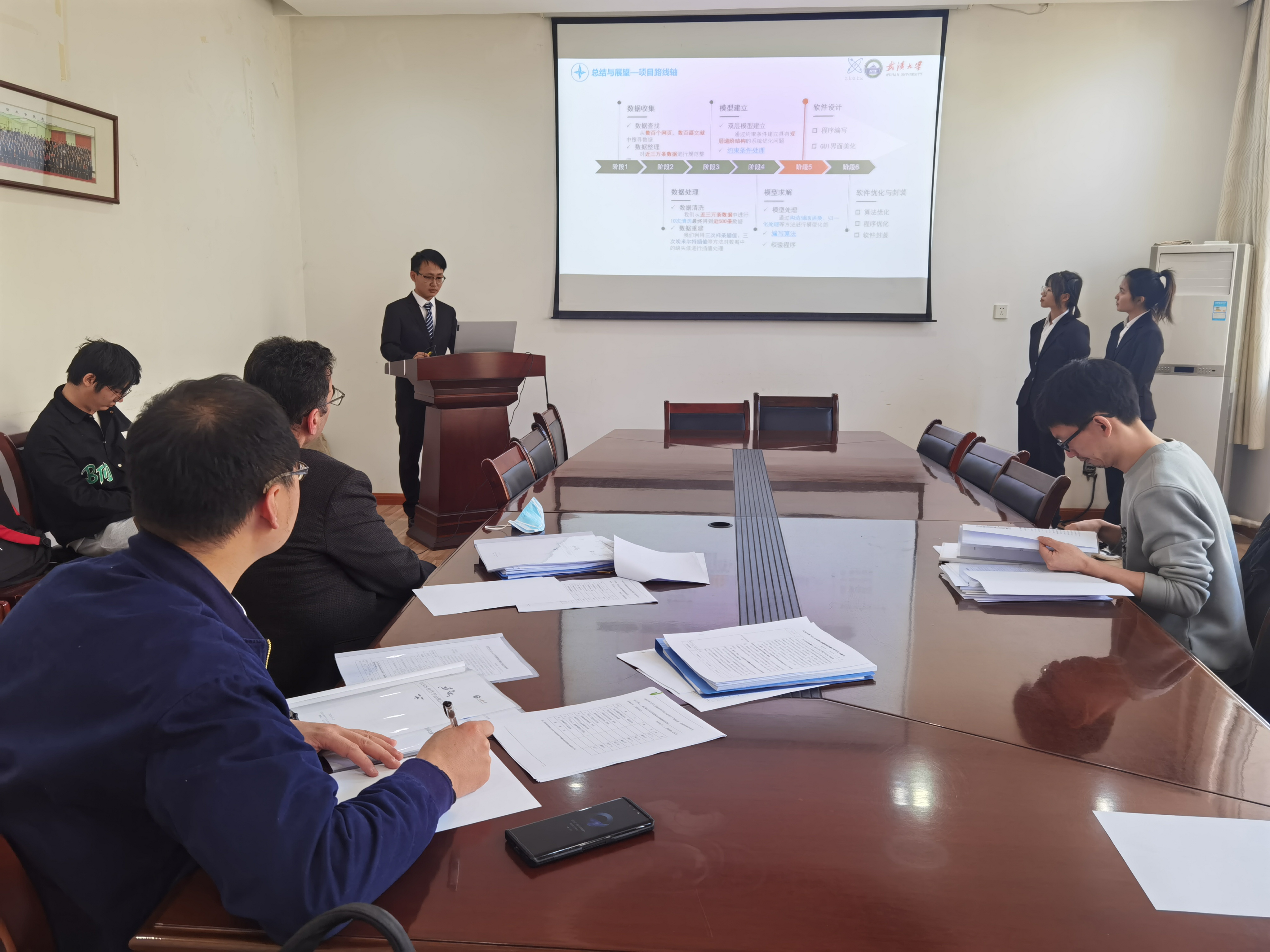 杜志叶、胡文山、唐飞、侯绍聪、刘飞、阿部六位老师担任专家评委,共20个队伍参加答辩。