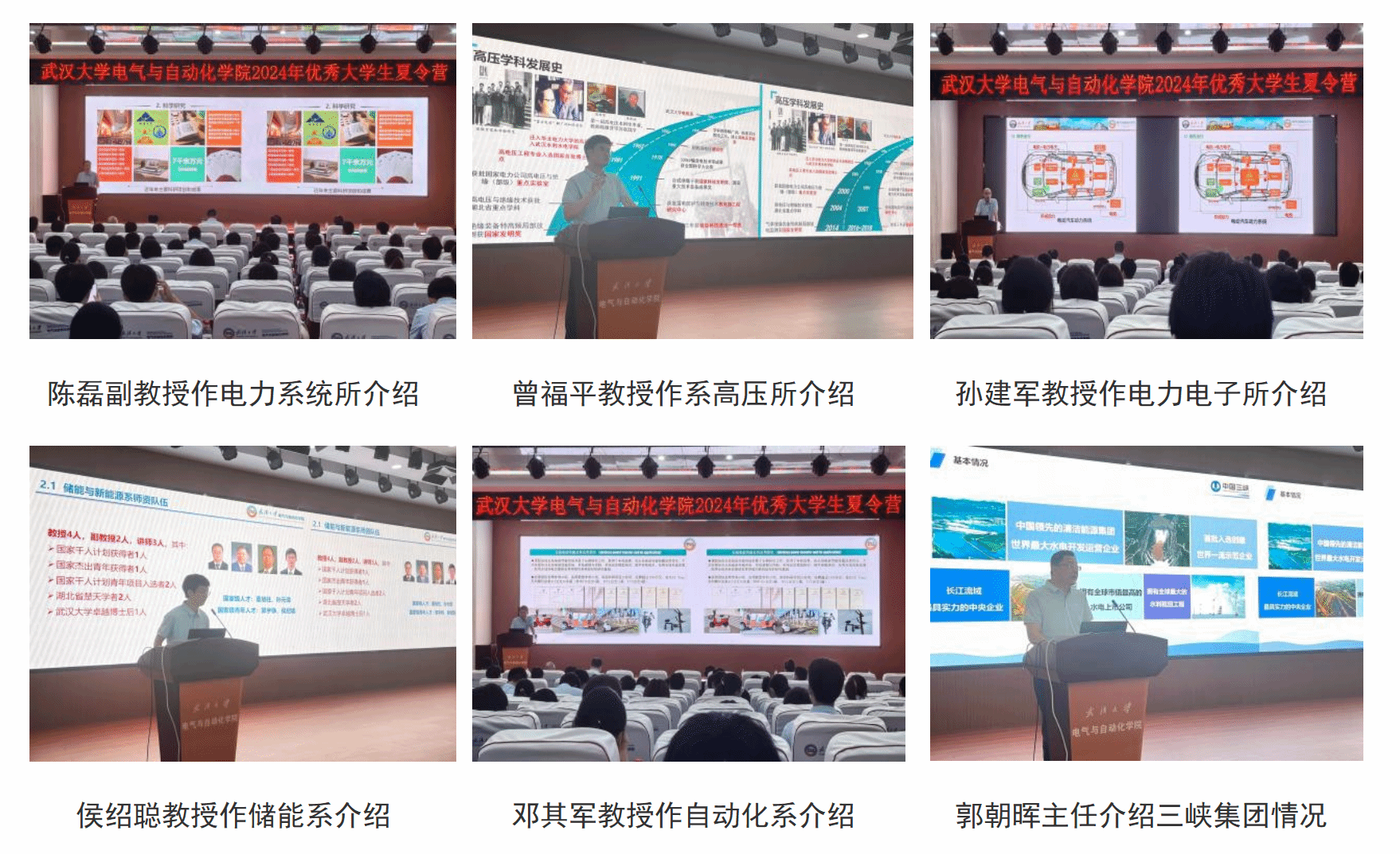 随后,陈磊、曾福平、孙建军、侯绍聪、邓其军五位老师和三峡集团郭朝晖主任分别介绍了电力系统研究所、高电压与绝缘技术研究所、电力电子与电机研究所、储能与新能源工程系、人工智能与自动化系和三峡集团的基本情况与特色优势,带领营员进一步了解黄播平台的人才培养平台与学术科研环境。