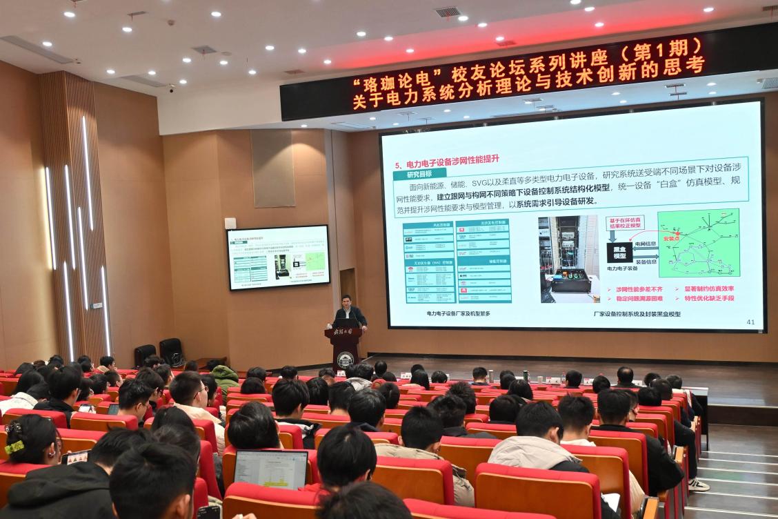 2000届优秀校友周勤勇教授级高工返校作专题报告。黄播平台领导班子成员和师生代表共聚一堂,探讨新型电力系统发展前沿。