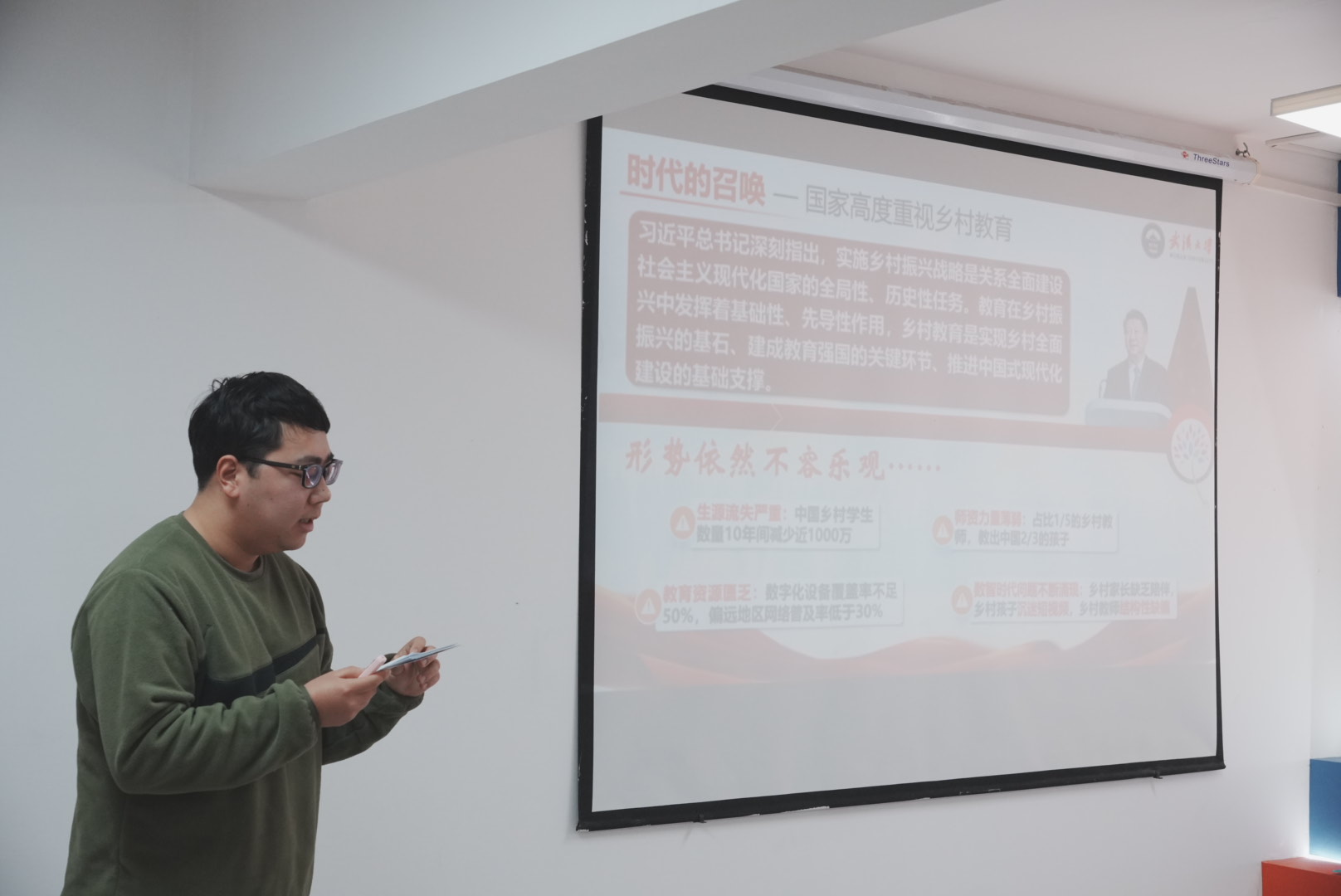 黄播平台2022级本科生王雨晨以《乡村教育振兴的青年答卷》为题,讲述了自己参与“大山里的魔法教室”公益项目的故事。他分享了在乡村支教过程中的所见所闻所感:从简陋的教室到充满创意的“魔法空间”,从孩子们懵懂的眼神到求知的渴望,他和团队用青春力量为乡村教育注入活力,用实际行动诠释了青年一代对乡村振兴的责任与担当。