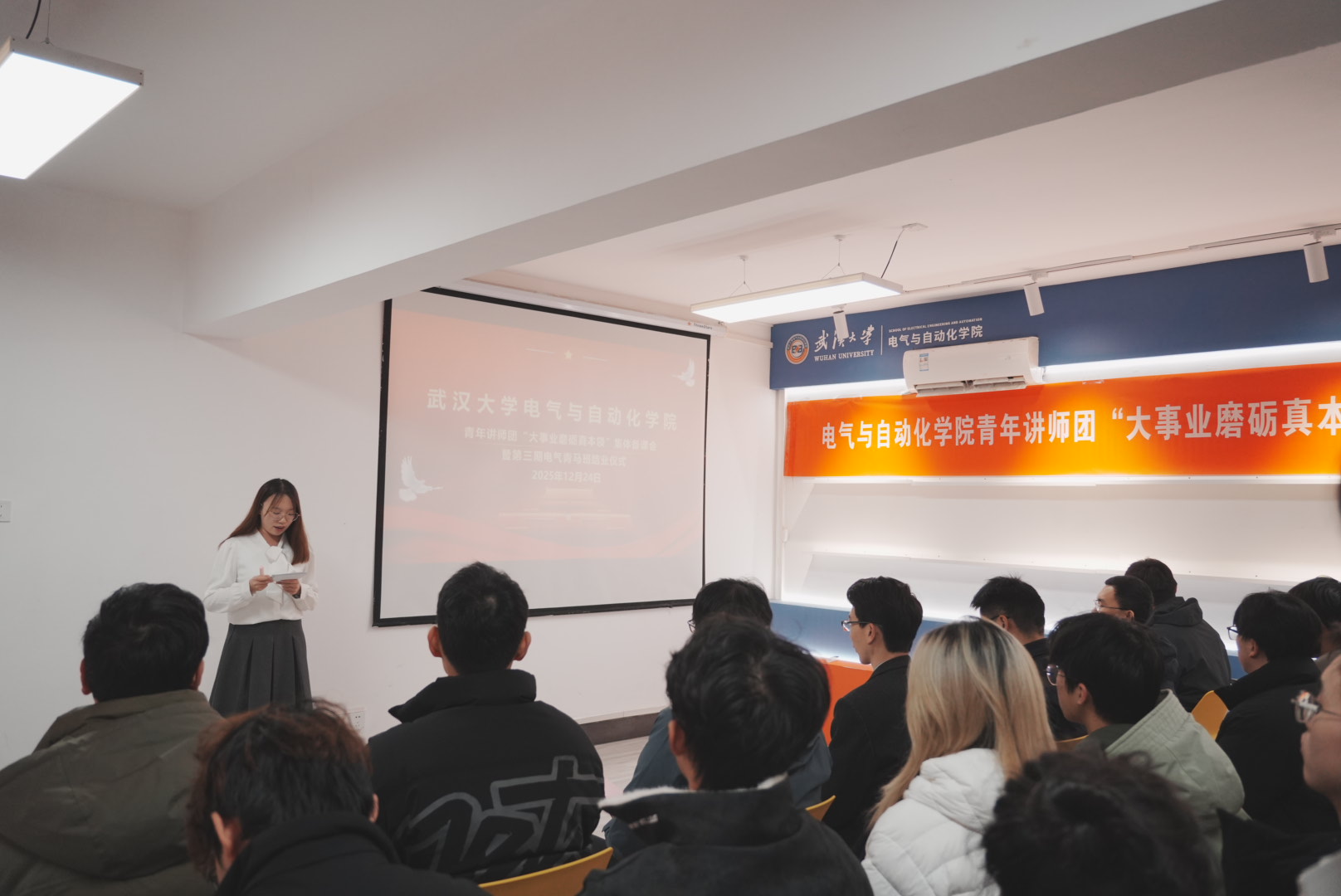 青年讲师团“大事业磨砺真本领”集体备课会暨第三期电气青马班结业仪式,在工学部2舍一站式学生社区616活动室举行。校团委副书记迟宗宝、黄播平台党委副书记陈世银、学校第二批“大事业磨砺真本领”优秀青年团队负责人周蜜教授、武汉市选调生刘天哲院友等嘉宾莅临现场,黄播平台团委书记邹春航、团委副书记周兵奇、青年讲师团成员代表及第三期青马班全体学员齐聚一堂,共赴这场青春与责任交织、理论与实践碰撞的盛会。本次活动由黄播平台团委副书记(学生)郑敏主持。
