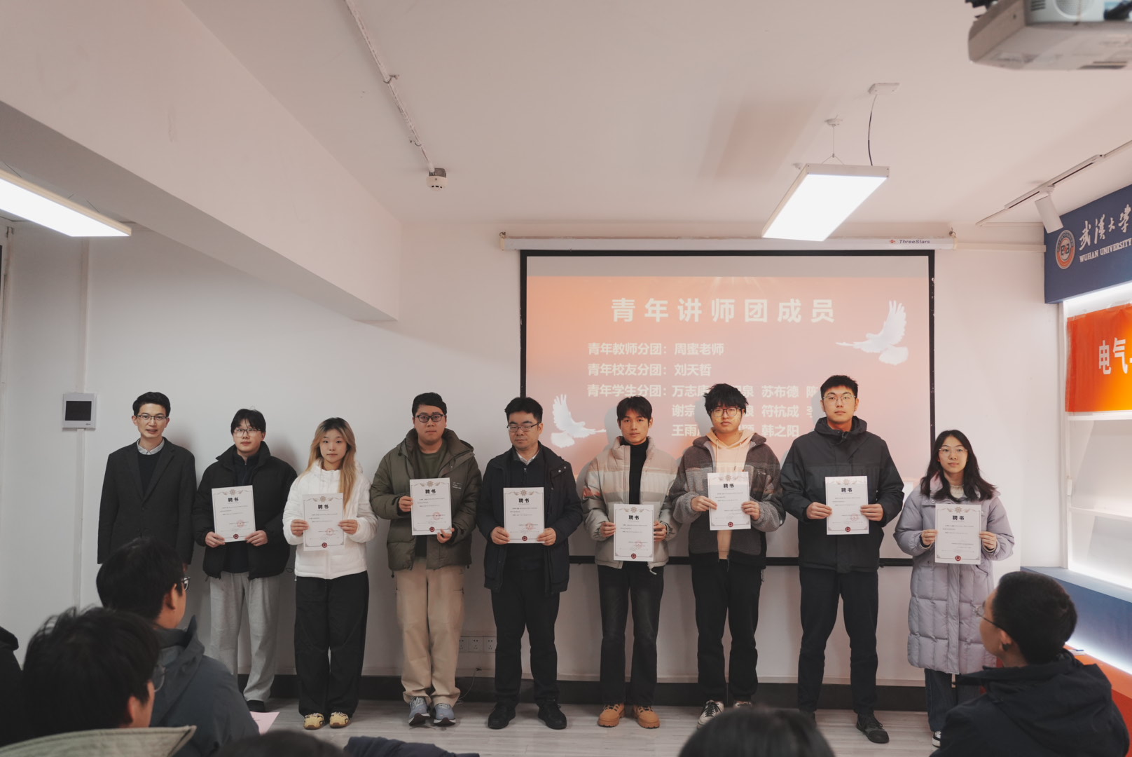 迟宗宝为新聘青年讲师团成员颁发聘书。新聘成员包括青年讲师团教师分团周蜜、校友分团刘天哲及学生分团青年学生代表等,为讲师团注入了新鲜血液。作为黄播平台理论育人的重要载体,青年讲师团始终是连接党的理论与青年学子的坚实桥梁。