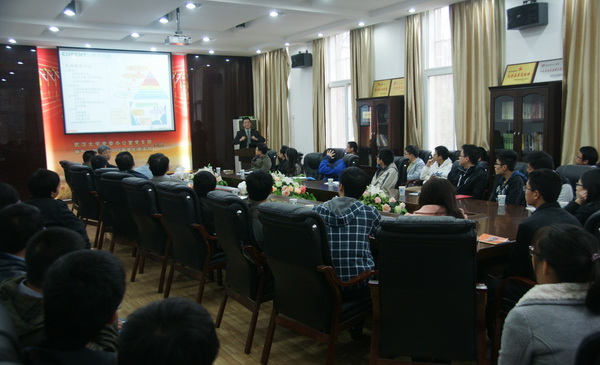 师生分别作了题为“超广域弹性输电网(CURENT)介绍”和“分布式电源的自适应控制”两场报告。李方兴教授在“超广域弹性输电网(CURENT)介绍”报告会中,介绍了美国超广域弹性输电网研究中心的管理团队,合作伙伴以及办公、科研设施,并系统地讲解了超广域弹性输电网包含的内容及基础研究。在“分布式电源的自适应控制”报告会中,李方兴就分布式电源接入电网的电压控制提出了自己的思路和方法,并展示了相应的研究成果。李方兴教授精彩的报告,博得了全场热烈的掌声。报告结束后,李方兴教授与参与报告的60余名师生针对报告相关内容进行了气氛热烈的学术交流和探讨。