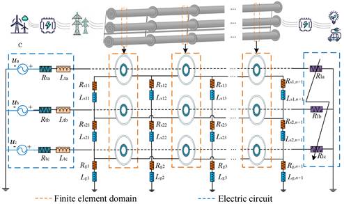 GIL在短路故障下会产生过高的暂态磁通密度和电磁力,影响管廊内监测和通信设备的正常运行,甚至破坏设备机械结构。计算长度在数千米至数十千米的GIL全尺度暂态电磁场分布,三维有限元方法将产生庞大的网格数量从而对计算资源要求极高,对计算资源要求低的纯等效电路则不能准确考虑集肤效应等因素以及不能得到设备自身的电磁场分布。