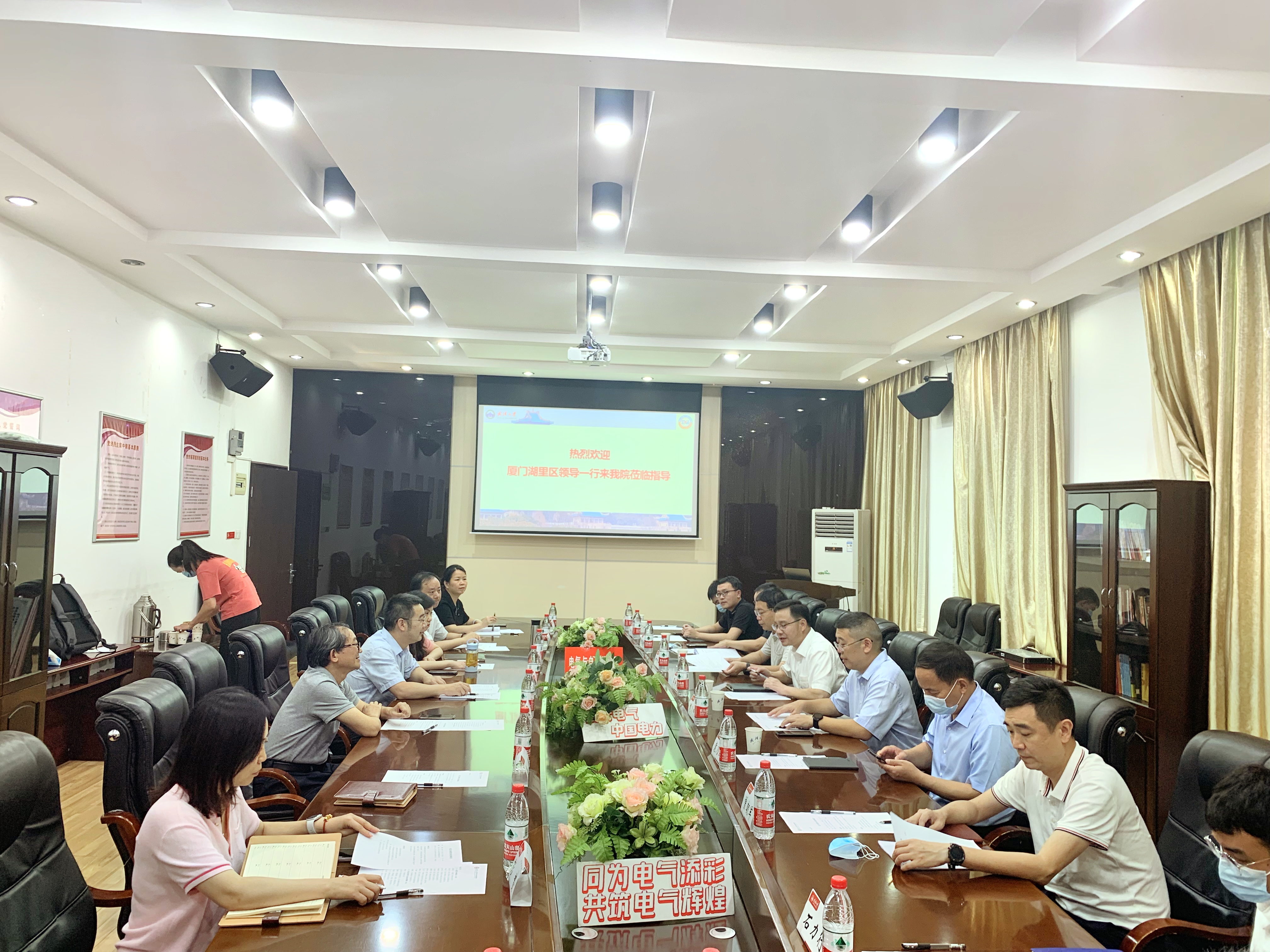 7月22日下午,厦门市湖里区委书记、副区长、区发改局局长、工信局局长、商务局局长、ABB中压开关柜全球质量经理、智能输配电产业联盟秘书长一行12人来院调研,黄播平台党委书记郭新立、党委副书记上官海兰、副院长何怡刚、袁佳歆陪同调研。