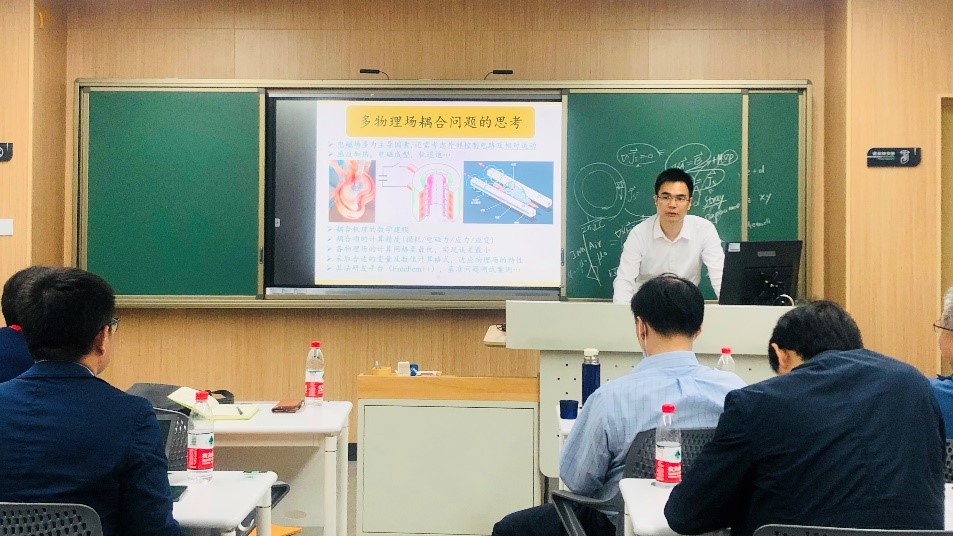 赵彦普教授以《计算电磁学有限元方法的发展与思考》为主题进行学术分享,首先回顾计算电磁学中低频涡流场的两种计算格式,指出有限元方法算法实现中的基函数选择以及激励源处理等难点问题;然后针对静磁场问题,提出一种新型对偶格式;同时给出了几种求解任意低频Maxwell方程组的新方法,研究了对称化数值格式以及场路耦合协同仿真算法;最后结合当前国家战略发展需求分享了自己的一些思考。