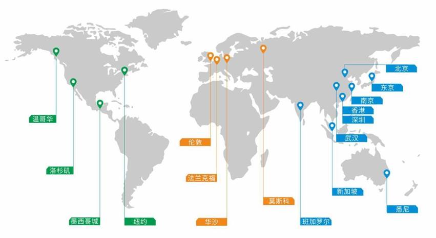 100 多个国内办事处,20 多个国外子公司与办事处,业务遍布全球 80 多个国家和地区。公司产品与服务广泛应用于银行、体育赛事(世界杯、欧洲杯)、国际会议(上合峰会、金砖会议)、机场、电视台、军工等领域,超过 15000 个项目案例。