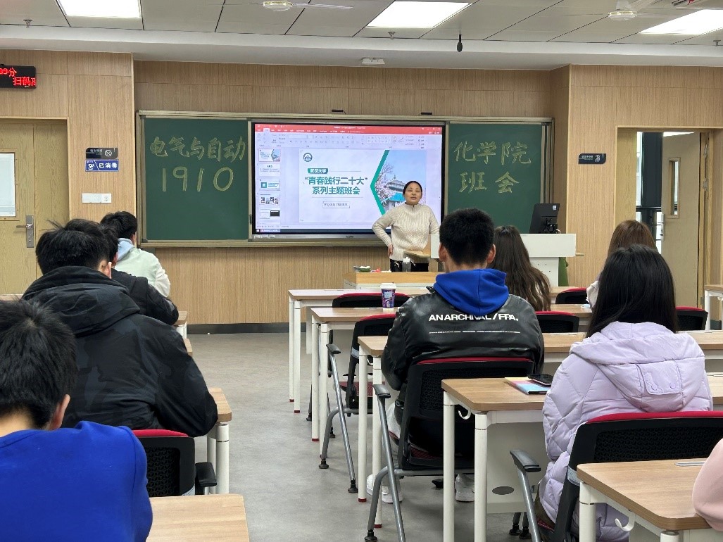 为深入学习宣传贯彻落实党的二十大精神,上好开学第一课,为学生解疑释惑、注入思想正能量,激励广大学生在新学期以奋进姿态激扬青春,不负时代,不负华年,1910班于32日上午10点于A311举行青春践行二十大主题班会。