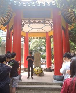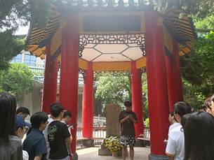 活动伊始,研究生2022级第五党支部纪检委员毕吉禹向大家介绍了六一纪念亭的历史,并向大家讲述在1947年6月“反饥饿、反内战、反迫害”斗争中死难的黄鸣岗、王志德、陈如丰三位珞珈先烈的感人事迹。听完了这段历史,大家一起通过默哀表达了沉痛的悼念。