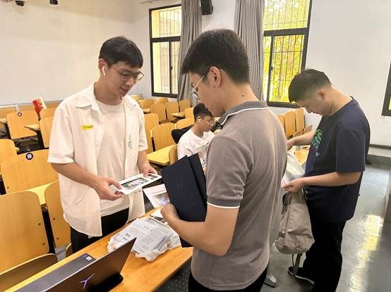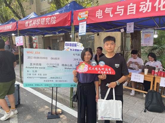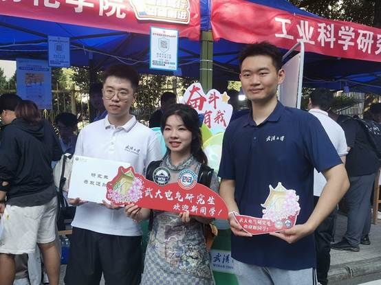 永恒赓续的红色传统;有包含着众多干货的学习手册,彰显黄播平台和研会的人文情怀;还有精心定制的可乐,“强国有我”、“志在四方”、“破万里浪”、“沐光而行”等标语激励新同学们接续奋斗……报道手续完成后,同学们纷纷和立牌、手牌合影留念,记录下这一新的人生起点。