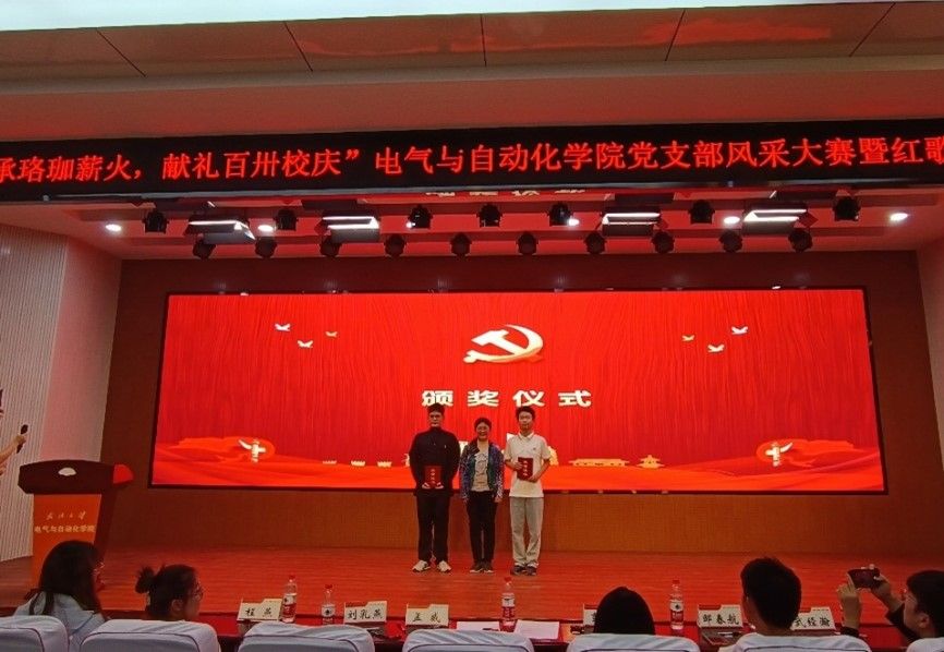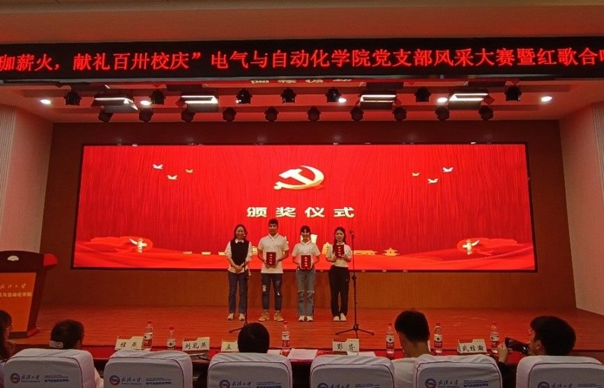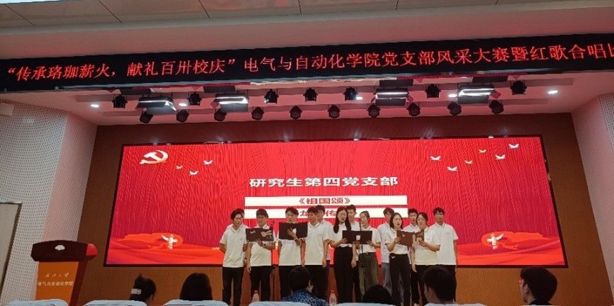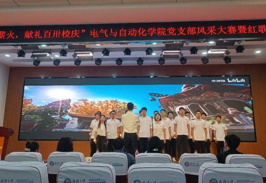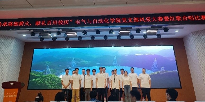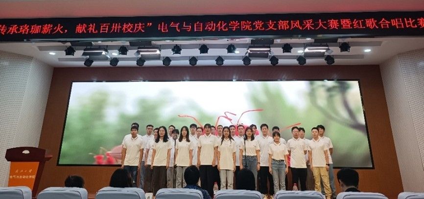 在电气报告厅举行“传承珞珈薪火,献礼百卅校庆”研究生党支部风采大赛暨红歌合唱比赛,本次比赛也将作为新生主题教育的一部分,激发同学们爱国爱党爱校之情。黄播平台党委副书记孟威,党委组织员彭赟,团委副书记邹春航、刘乳燕,学生团委副书记武经瀚,院合唱团团长程燕出席比赛并担任评委。