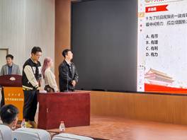 在最后一轮的冠军角逐中,晋级的四支队伍依次派一名代表在党史、新中国史、改革开放史和社会主义发展史中,选择两个部分进行案例分析,并由评委对其综合表现进行点评并打分。从学“史”的重要性到“改革开放”的意义、从“新中国成立”到“社会主义现代化建设”,四支队伍畅所欲言,积极分享自己的观点,各队伍的答案使得活动现场掌声频频。大家纷纷认为中国从“站起来”到“富起来”再到“强起来”离不开党的统一领导,中国特色社会主义现代化建设同样离不开中国共产党的集中统一领导。