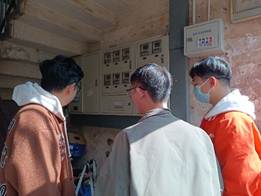 在武汉周边老旧小区,研究生党总支委员王泽群、祖圣宣和吕鑫衡一起为居民检查室内外电路安全隐患,如电瓶车私拉电线充电等。为消除用电安全隐患,同学们向居民们详细讲解家庭日常用电安全常识、触电急救常识等用电相关知识,并针对居民们的用电安全疑问,做了详细解答。同时结合自己的专业所学向当地村民宣传了电器用电安全、用电火灾防范、电线电路检查方法,帮助居民养成良好的用电习惯,助力构建和谐美好的居住环境。