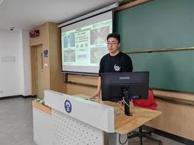 王明龙同学结合自身参赛经历为同学们分享了前期备赛及参赛过程中的经验和心得,他表示,参加比赛的作品立意很重要,要紧跟时代热点;另外作品可展示性要强一些,短暂的展示过程要突出自己的作品的亮点功能。对于一些企业级的赛事,要做出符合各种指标的样机或者作品,不仅需要创新性,打磨硬件技术是关键,因此,平时的硬件技术积累很重要。针对同学们的困惑,王明龙同学均进行了详细解答,帮助同学们借鉴成功经验。