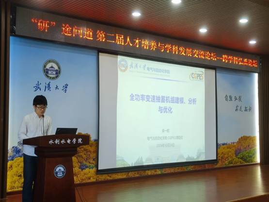 直博生栾一航以《全功率变速抽水蓄能机组建模、分析与控制》为题进行学术报告。针对我国抽水蓄能储能手段的规模与巨大的发展潜力,栾同学则从整体模型、控制策略、运行特性、优化方案等方面,基于全功率变速抽蓄机组的运行特性与控制策略研究向大家介绍了自己的研究成果。他指出,该研究的深入推进也将为未来全功率变速抽蓄机组在实际电网中的应用提供了可靠的理论支持。