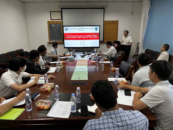 副院长袁佳歆教授做了以《The Present Status and key technologies of Fault Current Limiter in High Voltage DC Power System》为题的学术汇报,并介绍了我校智能磁控先进装备课题组在高压磁控设备方向上的研究历程以及相关科研成果。他表示,佐贺大学和黄播平台