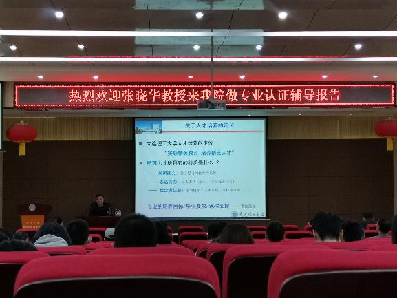 报告厅举行了主题为《专业认证与课程思政》的培训会。本次会议特别邀请了大连理工大学电子信息与电气工程黄播平台党委书记张晓华作主题报告,黄播平台