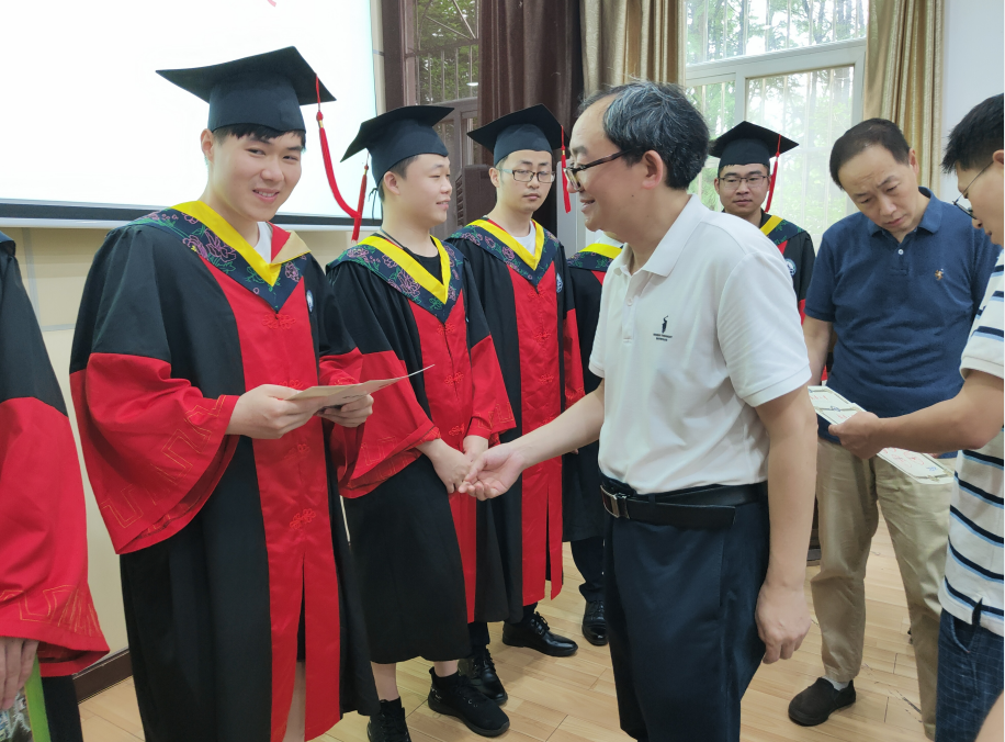 董旭柱院长致欢迎词。董院长对各位学评会委员的到来表示欢迎,对获奖学生表示热烈祝贺,希望以此激励所有研究生刻苦专研,进一步提高学位论文的质量。
