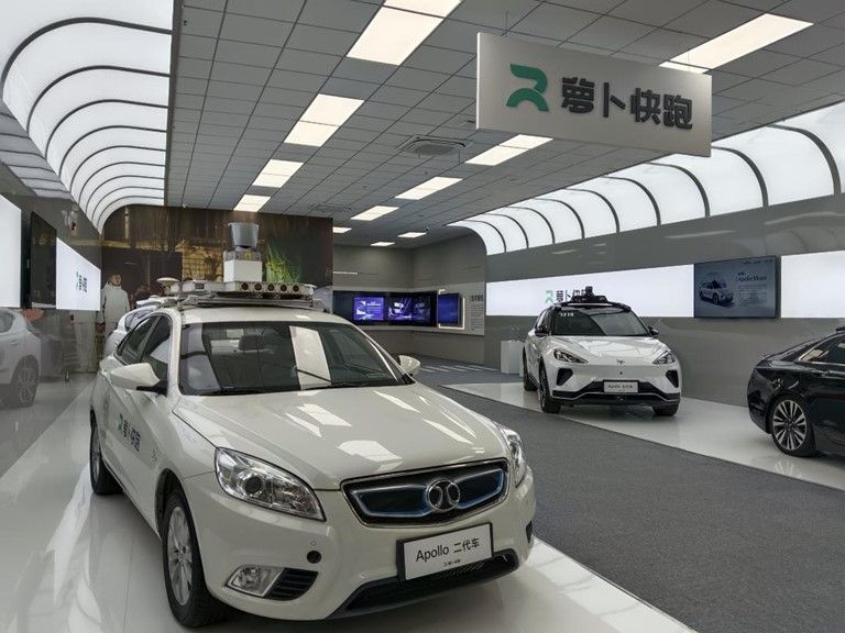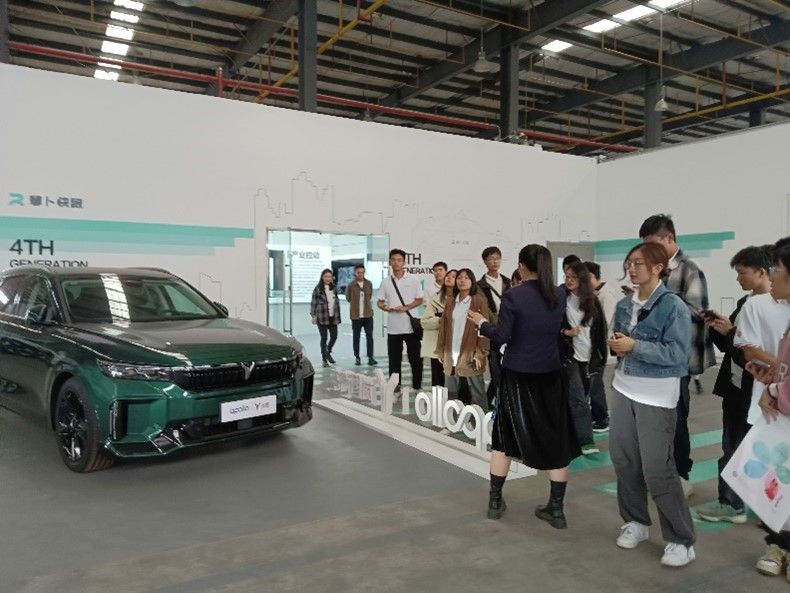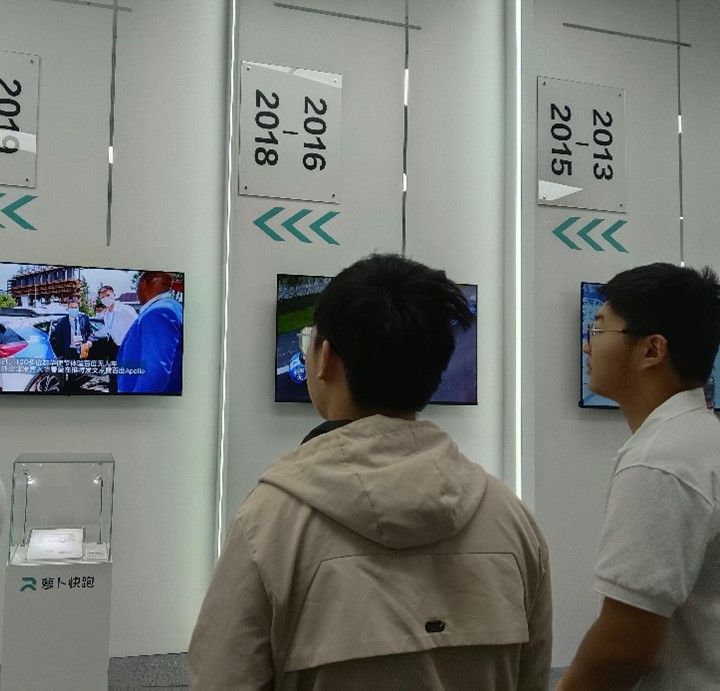 跟随讲解员的脚步,同学们来到下一个展厅。近距离接触百度Apollo一代到五代车,参观5G云驾驶舱的工作现场,同学们感受着时间的纵深,领略了与科技成果融合的努力,发出了此起彼伏的惊叹。