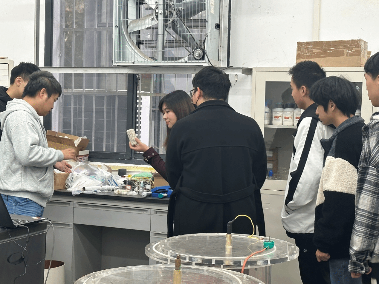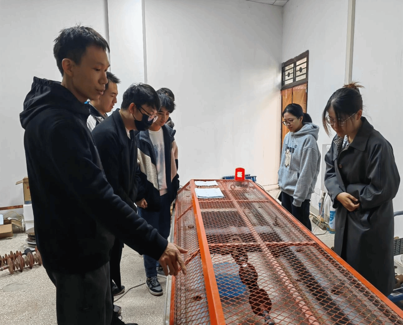随后,跟随着李元杰博士的步伐,同学们先后参观了高电压绝缘子材料的储存室和绝缘材料检测以及绝缘子拉伸的实验室。李元杰博士用生动的语言,为同学们深入浅出地讲解了电气专业领域的知识,让同学们深刻体会到了工科的魅力。