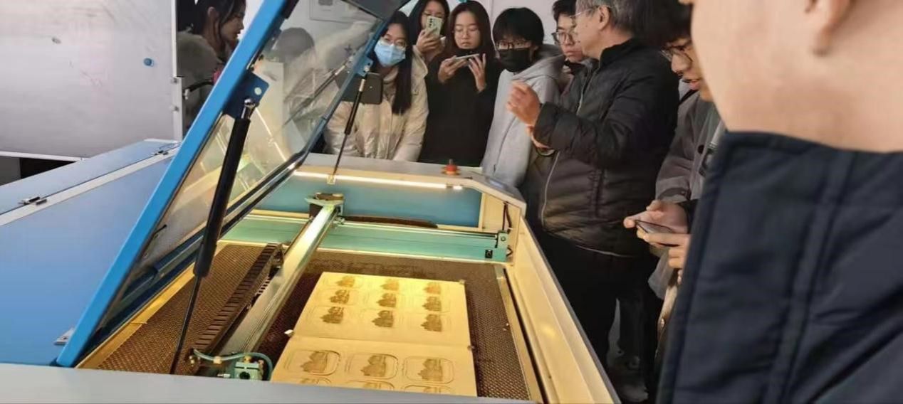 在正式开始之前,陈教授亲自示范了激光雕切机的使用流程:他在电脑的专用软件上建模绘制模版,插入自己喜欢的照片或自己设计的精美图案,选择好切割的材质、深度和方式然后设定并传输数据,最后启动激光雕切机将自己的想象雕刻成为现实。