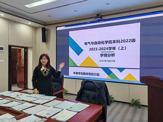 王青全面总结了2022级本科生上学期期末考试成绩、绩点分布、期末挂科和学业预警等情况,汇报了针对部分学生学业问题采取的措施和效果,分析了谈话过程中发现的普遍困难和问题,并介绍本学期将采取党员学生“二带一”的学业精准帮扶计划,签订帮扶协议、定期反馈学习效果,发挥学生党员的“头雁”作用,带动学困生的学习积极性。