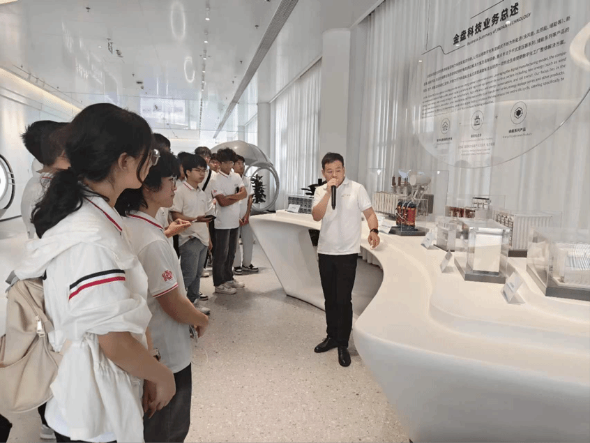 金盘科技工业园不仅是高精尖技术投诸生产的实干基地,也是模式创新、技术创新的前沿。在这里,大家不仅看到了高度自动化的机器生产线,还近距离感受到了科技理论在实际生产中的多样应用,与金盘科技的工程师们近距离接触,对课本上出现的设备与系统有了进一步的认识。