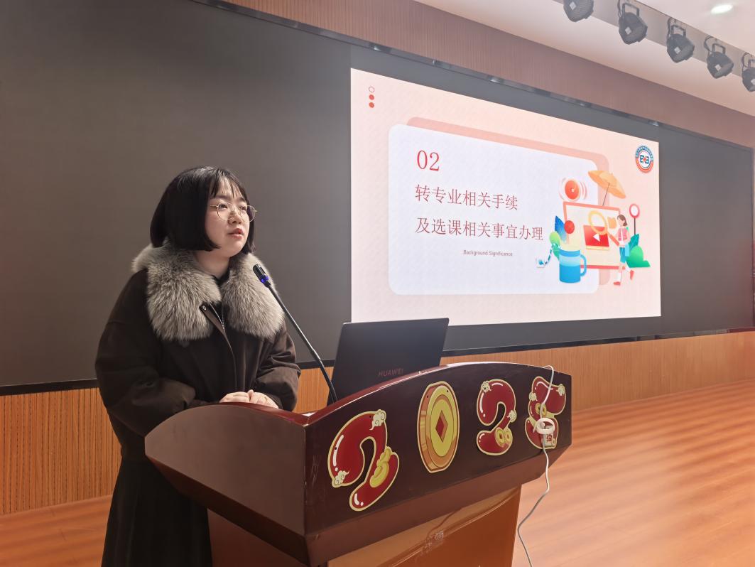 针对转专业学生关切的学业衔接问题,韩老师详述学籍转换、课程置换及选课安排等具体流程,强调辅导员与学业导师将全程帮助大家完成学分认定与课程选修。