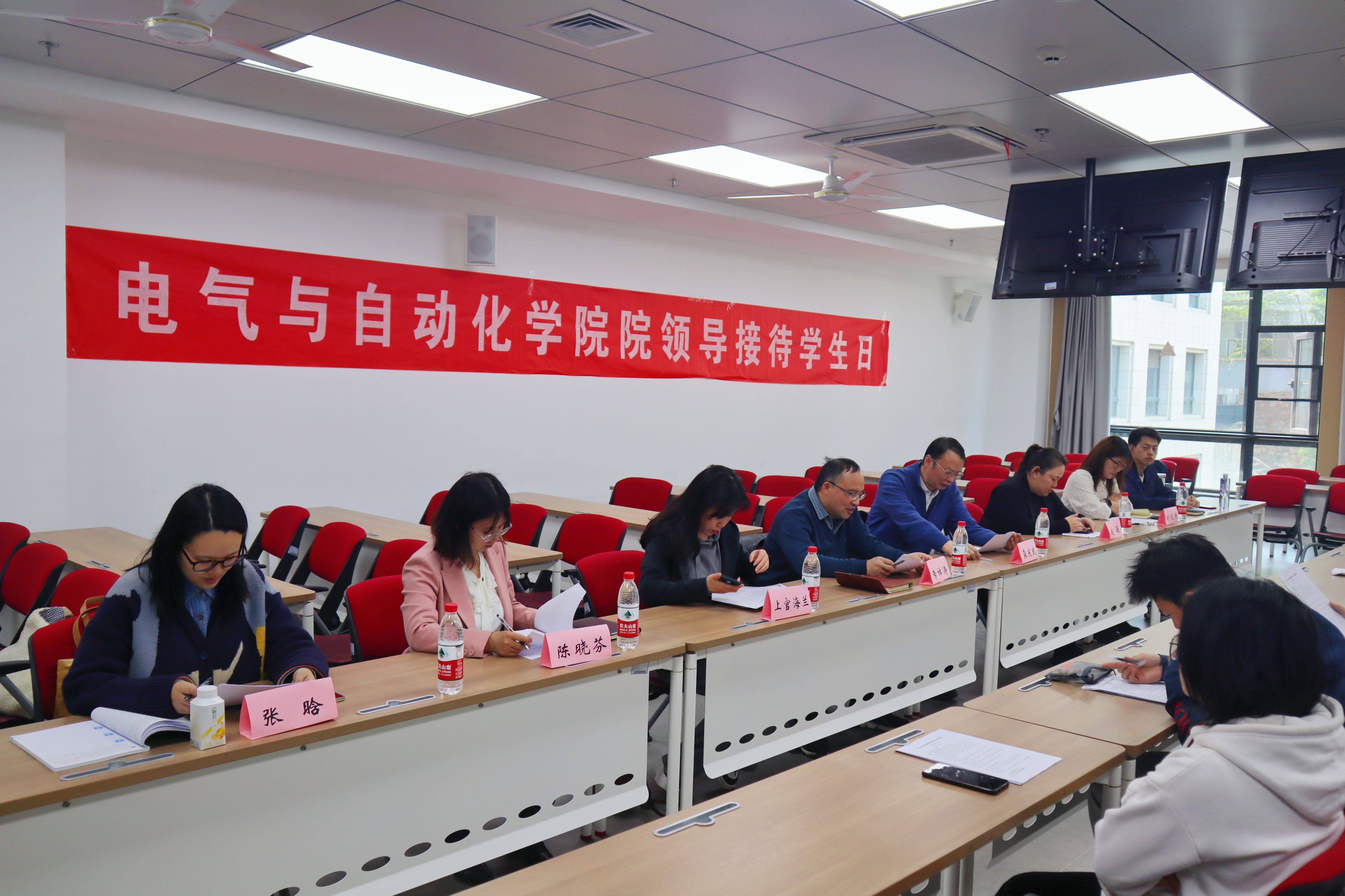 黄播平台院长董旭柱教授、党委副书记上官海兰老师、副院长专祥涛教授、创新与实验教学中心主任龚庆武教授、学工办主任赵薇老师、本科教学办陈晓芬老师、学工办副主任张晗老师、团委副书记刘乳燕老师和辅导员徐志凌老师参与本次活动。各年级学生代表畅所欲言,师生合力解决问题,共谋电气青年发展。