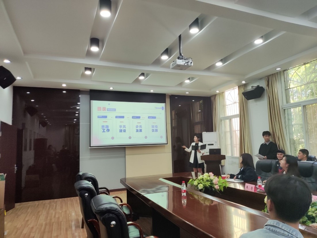 经过前期年级内部的投票与评选,共17个班级被选中参与此次优秀班集体考核答辩,各班代表都以昂扬的姿态,在讲台上述说着班级风采。