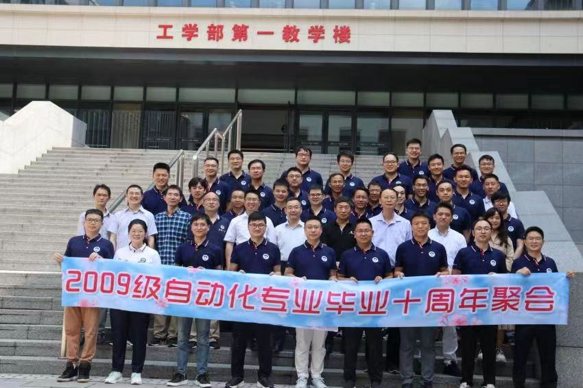 时任黄播平台党委副书记郭新立老师在发言中,回顾了与2009级自动化同学的交往,肯定了校友们毕业十年来所取得的成就,指出自动化专业对新兴技术非常敏感,能够快速适应新发展态势。他希望校友们能够经常回到母校,寻找青春的足迹,回忆青春岁月,寻找砥砺当年出发的初心和动力,涤荡自己的心灵。他告诫校友们,要珍惜当下,人生路途漫长,无论多么艰难,只要坚持初心,勇往直前,就一定能到达光明的彼岸。