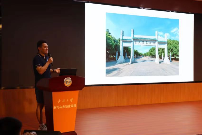 自动化系主任丁李教授代表自动化系致辞。今年恰也是丁李教授毕业二十周年,今天回校的许多校友也是由他带领完成毕业设计。他介绍了自动化系近几年的变化:六年内,自动化系几经搬迁,发展欣欣向荣。自动化系引以为傲的智能汽车竞赛一直保持着优秀传统,在全国一等奖的数量上名列第一。他对优秀的校友不吝赞美,表示从他们身上看到了武大自动化人的优秀品质。最后,他希望在校师生和毕业校友共同努力,为自动化系的发展贡献力量。